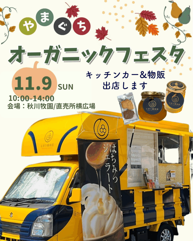 「やまぐちオーガニックフェスタ2025」 に、ときつ養蜂園は今年もキッチンカーで出店します!