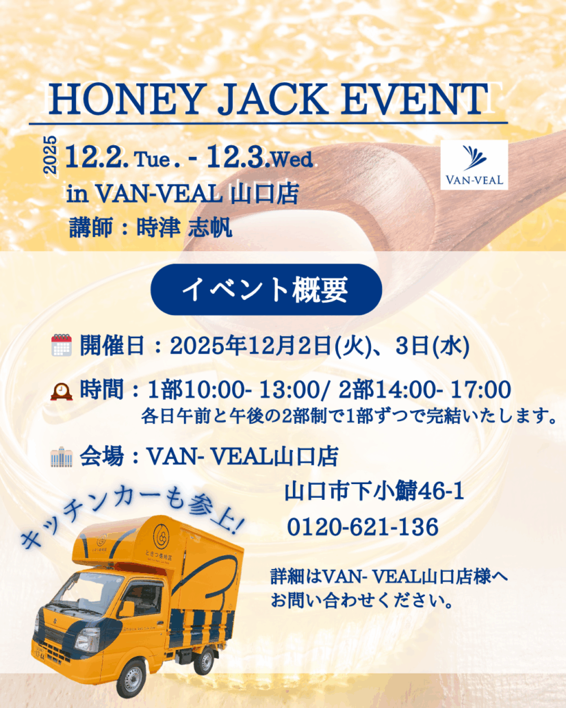 開催されるイベントはときつ養蜂園の時津志帆が講師を務める、「HONEY JACK EVENT」です。