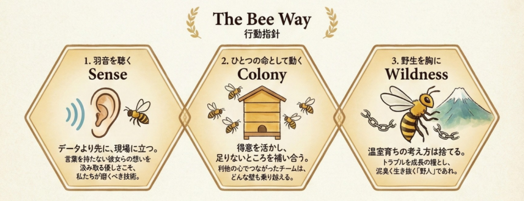ミツバチが互いを守り合い、ひとつの大きな家族として生きるように。